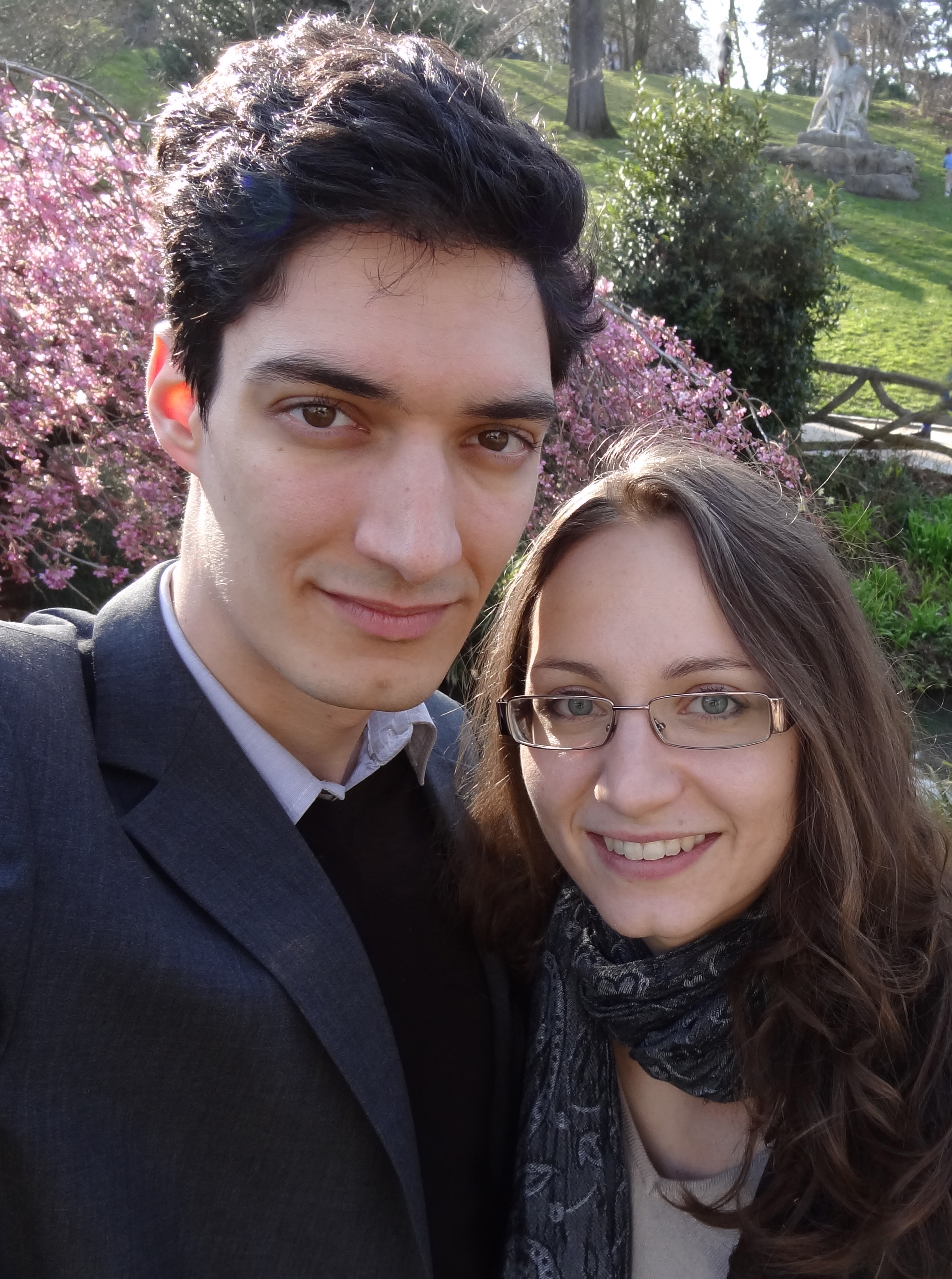 Nous nous sommes rencontrés au début de l’année 2011 au sein de l’association chrétienne de l’Ecole Normale de Cachan où nous commencions notre première année d’études. Après plusieurs semaines durant lesquelles nous nous sommes croisés sur le campus en nous faisant des petits sourires et où nous nous sommes revus aux soirées organisées par cette association chrétienne, Adrien a invité Floriane à manger de délicieuses pâtes à la carbonara dans son appartement, soit disant pour qu’elle lui explique les différences entre catholiques et protestants, car Floriane est protestante et Adrien catholique. Vous n’êtes sûrement pas dupes, mais Floriane y a cru et a bien révisé dans son précis de l’histoire du protestantisme ! Lors de ce repas, nous nous sommes complétement découverts et nous avons beaucoup ri, à tel point que nous ne voulions plus nous quitter, mais Adrien avait un rendez-vous pour un stage… C’était le 6 avril 2011 et le lendemain matin, Floriane a reçu un charmant sms l’invitant à revenir manger quand elle voulait ! Malheureusement, les vacances de Pâques arrivaient… Après les deux semaines de vacances, durant lesquelles nous nous étions quand même envoyés quelques sms qui trahissaient bien notre intérêt mutuel, notre impatience a grandi et nous avions hâte de nous revoir à la rentrée !