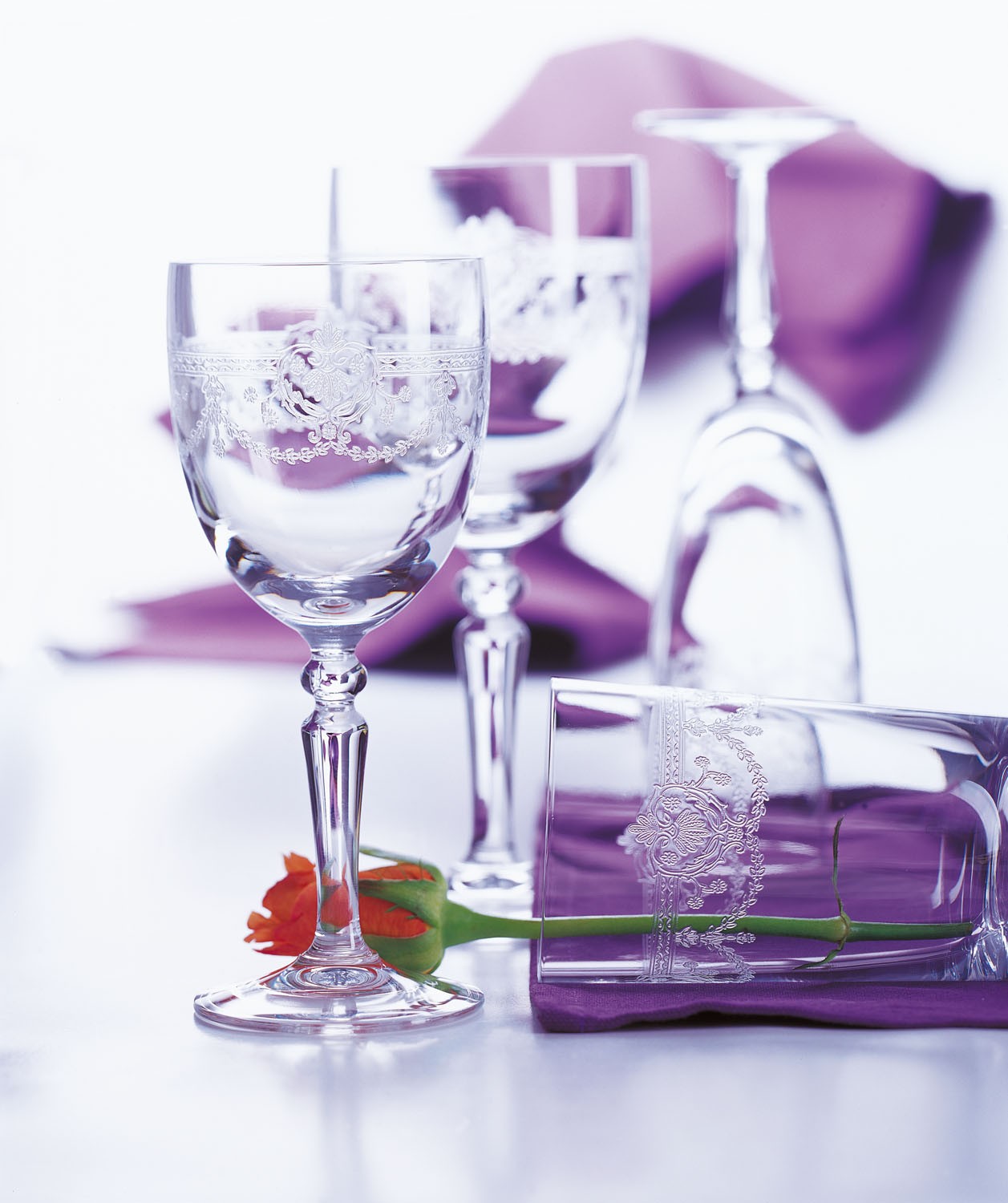 Collection DampierreLa collection Dampierre témoigne de la volonté de Cristal d'Arques Paris de vouloir donner leurs lettres de noblesse aux arts de la table. Cette collection conjugue à merveille le raffinement d’une gravure minutieuse, précieuse (une frise évoquant les motifs des dentelles les plus fines) à la pureté du cristal.